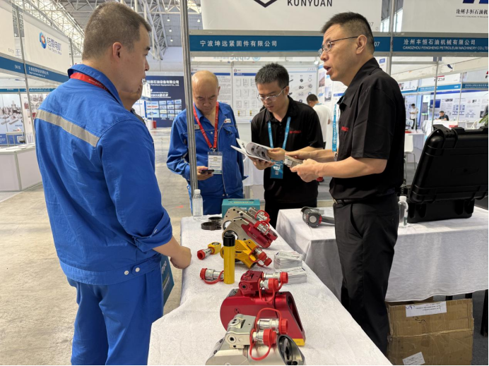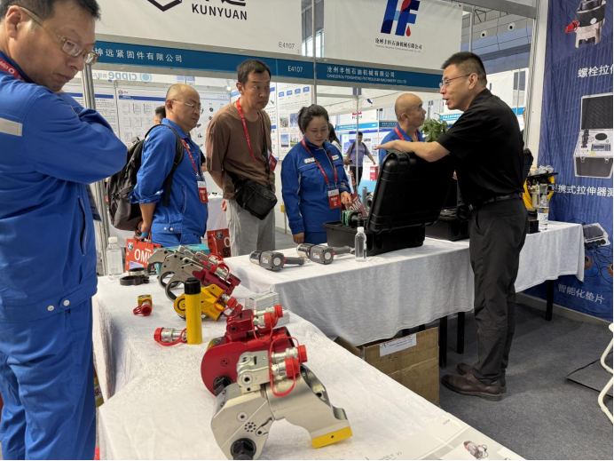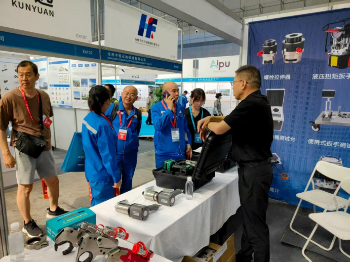 一位来自新疆本地油田的技术负责人特意驻足,详细询问电动扭矩扳手在极端温差下的密封性能与续航时间,雷恩工作人员当场演示了设备的工况模拟数据,并结合实际案例给出解决方案。