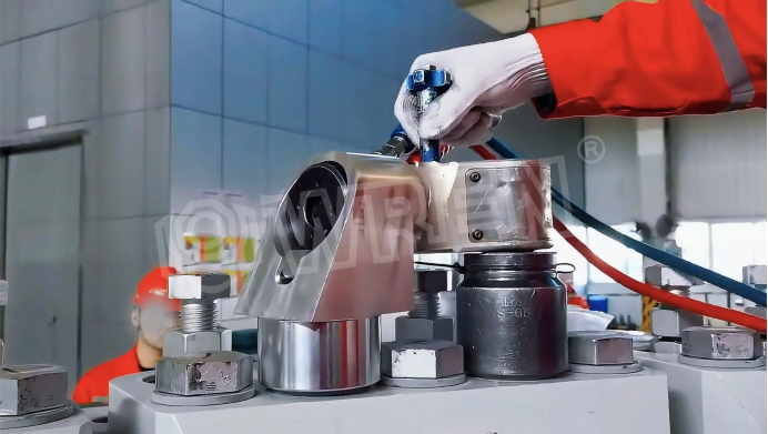 某风电客户现场作业工况复杂,常规液压扭矩扳手的反力臂存在适配性差的问题,不仅施工作业中易产生干涉,还因操作间距不足极易引发夹手的安全风险。为彻底消除该安全隐患、贴合现场实际施工条件,特定制专用适配反力臂,确保液压扭矩扳手操作安全、无安全隐患。