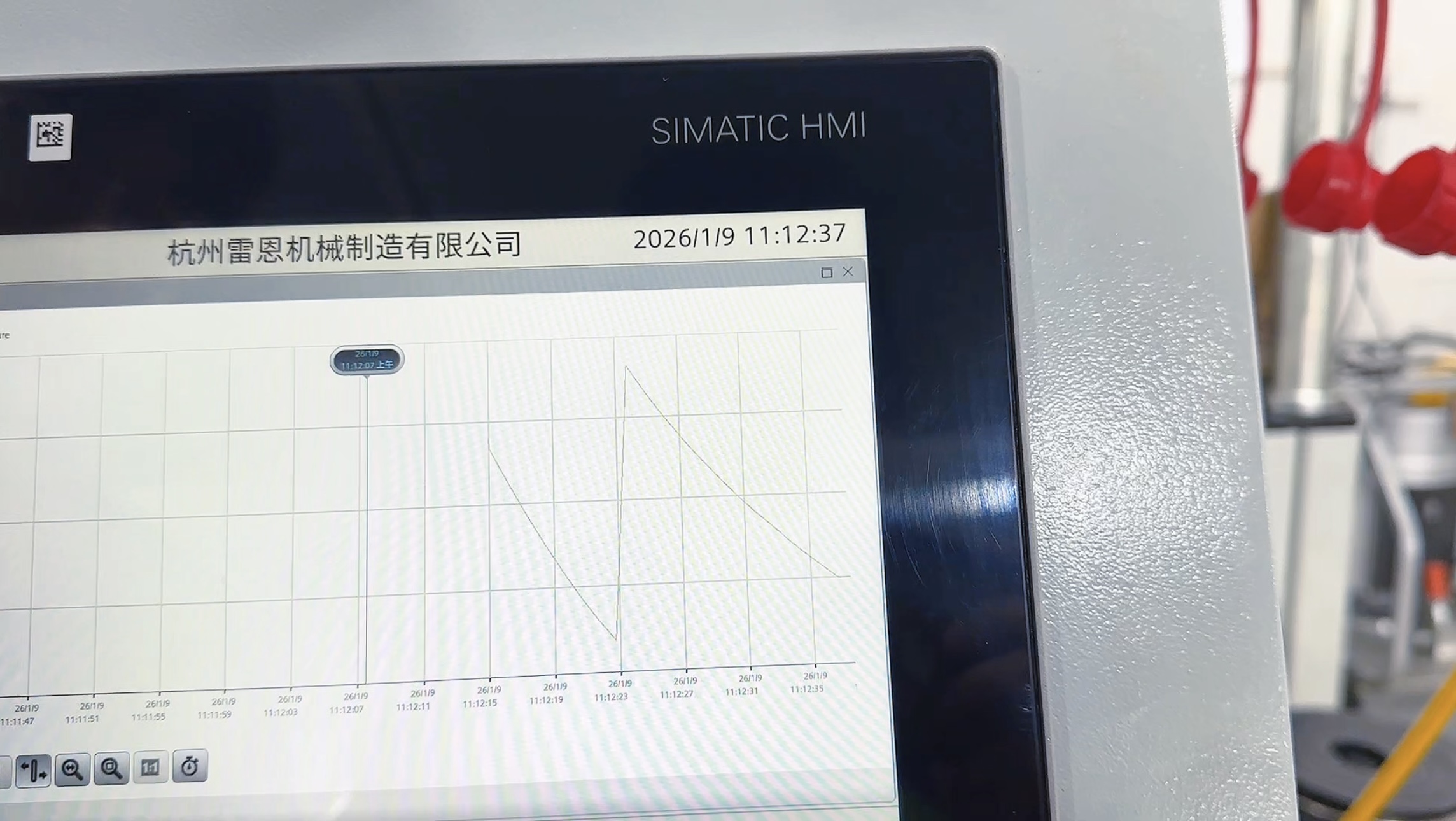 压力曲线,压力数值实时显示在触摸屏上。