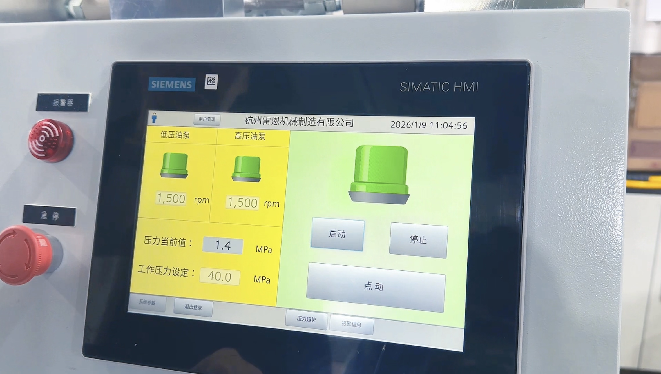 采取PLC控制模式实现全自动控制,所有启动、停止操作全部在触摸屏上完成,屏幕清晰的压力数值显示,准确的反映即时升压变化状况,方便现场使用。